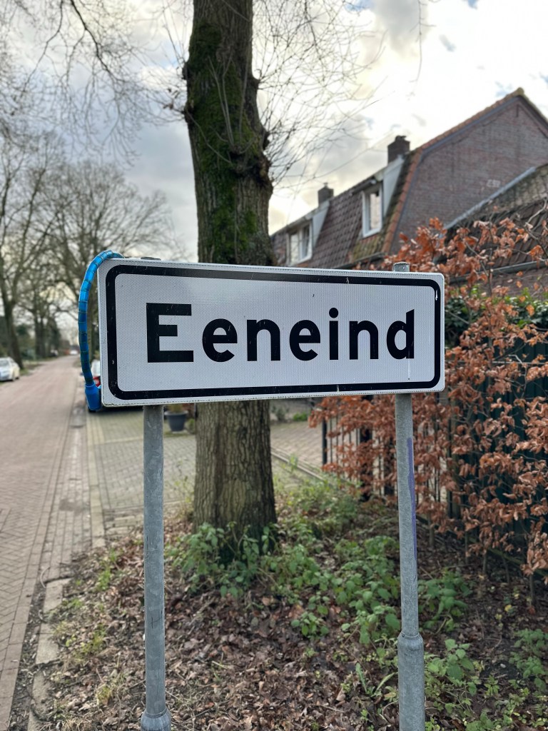 Eeneind is een buurtschap van nauwelijks zevenhonderd inwoners en net als Opwetten onderdeel van de gemeente Nuenen. Als we midden in Eeneind het spoor oversteken slaan we meteen rechtsaf een klinkerpad in met de naam Stationsweg, vernoemd naar een in 1938 gesloten en in 1972 gesloopt station.