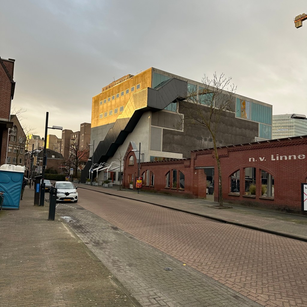 Ook hier krijgen we – aangewakkerd door de tekst op de gevel- het verlangen om terug te tijdreizen naar 1925. En hier een tussenstop in te lassen. Het gebouw heeft ook dienst gedaan als rijwielstalling en veestalling. En als hoofdkwartier van de harmonie ‘oefening en volharding’ .