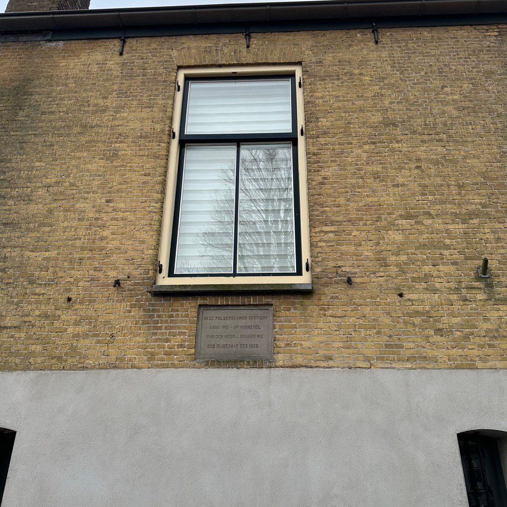 Op steen in de gevel wordt nog de naam van de voormalige dijkgraaf heer L. Braber genoemd. Geboren in 1820. Braber was blijkbaar op late leeftijd nog fit en actief. Wan volgens de steen stichtte hij in 1901 de Redoute een polderkamer. Vanaf 1973 is de Redoute een woonhuis.