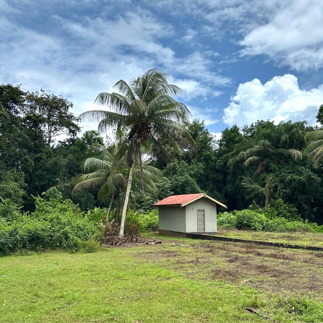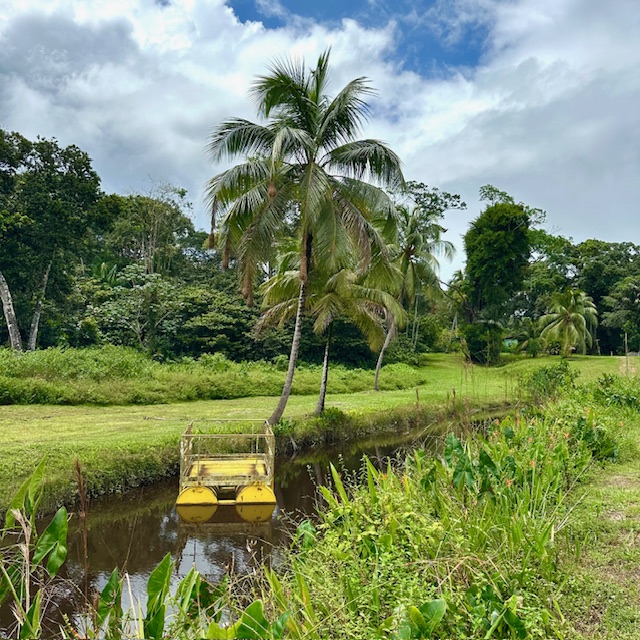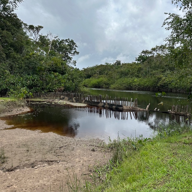 Na de begraafplaats nemen we een bocht naar rechts, over het gras, langs een klein beekje richting de Parakreek. Volgens Gilbert de plek waar Koningin Juliana met haar schuit zou zijn aangemeerd tijdens haar staatsbezoek aan Suriname in 1955. Maar het is vooral ook de plek waar slaafgemaakten, de suiker en later het hout werden af- en aangevoerd. In en vanuit het bos en de stad. Bij de steiger maakt een moment van sprakeloosheid zich van mij meester. Er gaat van alles in mij om. En ook bij Gilbert ‘Hier is het allemaal begonnen’